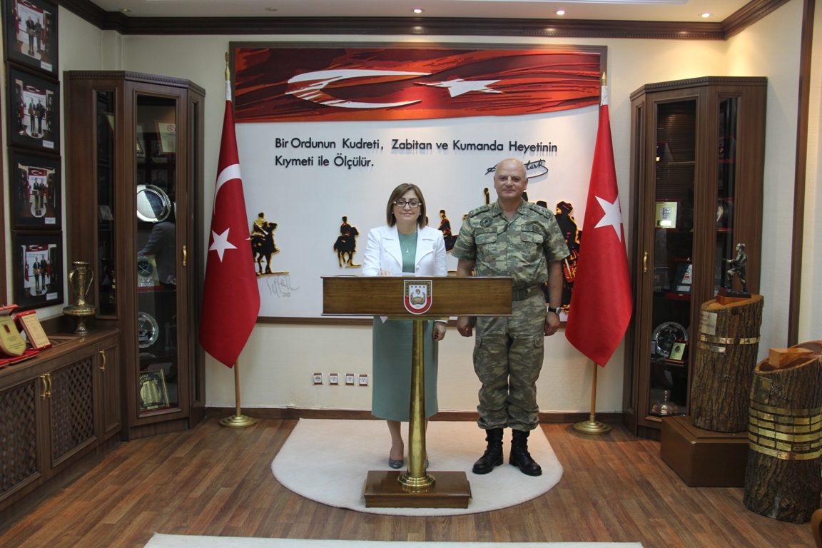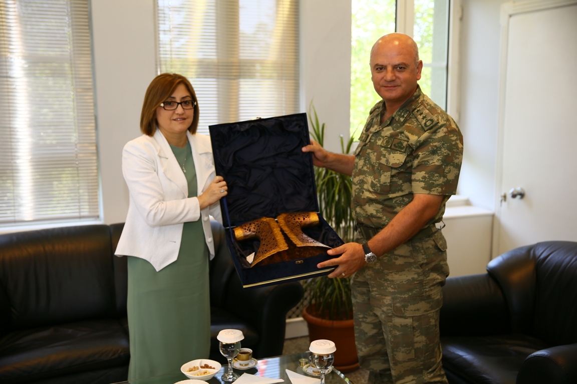 Görüşmenin ardında Başkan Şahin, Kurmay Albay Cemalettin Doğan’a Gaziantep’e has bakır işlemeli kaftan hediye etti.