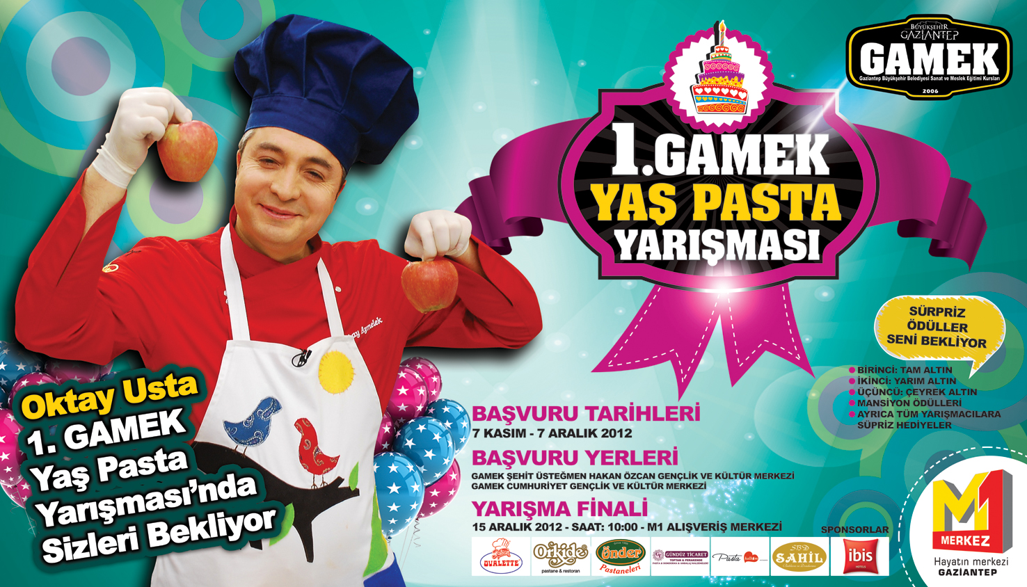 Samanyolu TV’nin en çok izlenen programlarından biri olan ‘Yeşil Elma’nın sunucusu aşçı Oktay Usta’nın jüri başkanlığı ve sunuculuğunu yapacağı ‘1. GAMEK Yaş Pasta Yarışması’na başvurular 7 Aralık tarihine kadar GAMEK Cumhuriyet ve Şehit Üsteğmen Hakan Özcan Gençlik ve Kültür Merkezleri’ne yapılabilecek.