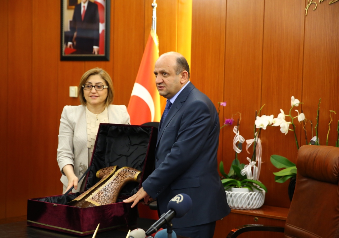 Başkan Şahin ziyaretin anısına Bakan Işık’a Gaziantep’i simgeleyen yöresel hediyelerden bakır, Işık ise Başkan Şahin’e cam ve seramik hediye etti.