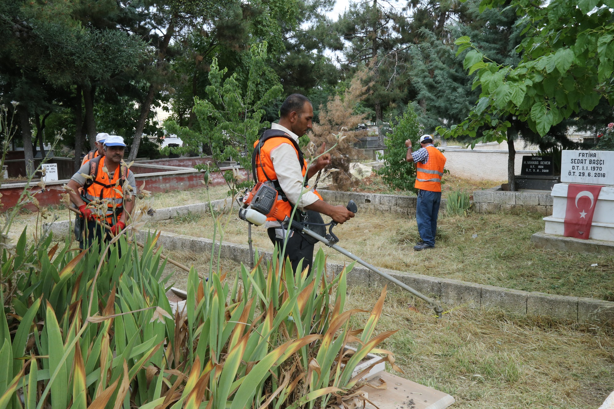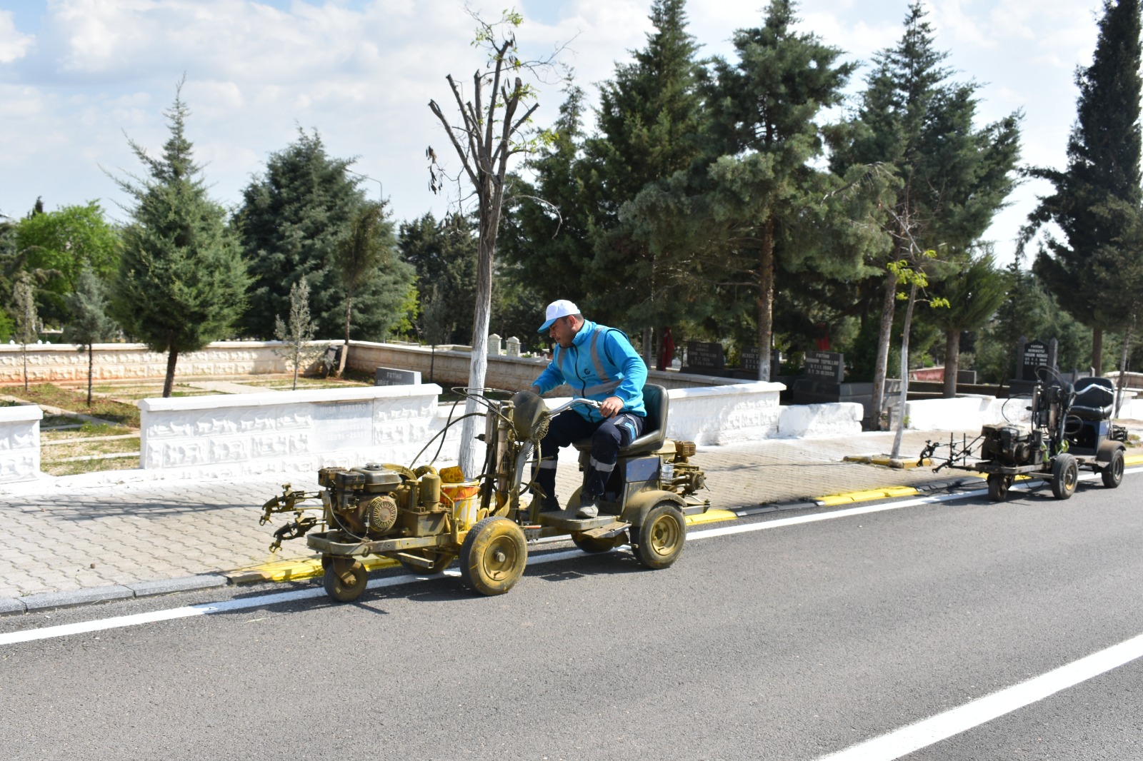 Mezarlıklarda bakım ve onarım çalışmaları kapsamında ekipler temizlik, badana, yönlendirme levhası değişimi, ilaçlama, asfalt bakımlarını tamamlıyor. Ekipler ayrıca Arife günü mezarlıklara ziyarete gelen vatandaşlara Yasin kitabı ve ağaç fidanı dağıtacak.