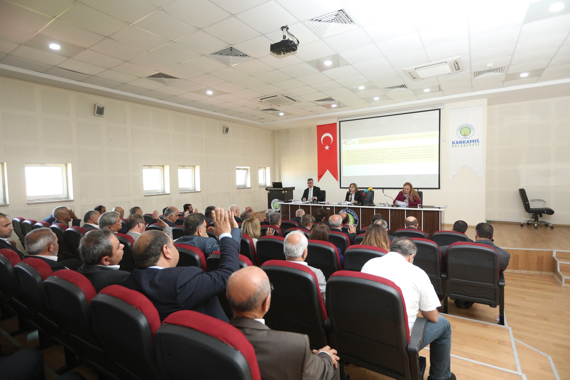 Gaziantep Büyükşehir Belediyesi Mayıs Ayı Dönem Toplantısı birinci birleşimi sınır ilçesi olan Karkamış’ta toplandı. İlçede yapılan yatırımlar ve 2014 sonrası güvenlik konusu başta olmak üzere yapılan altyapı çalışmaları konuşuldu.