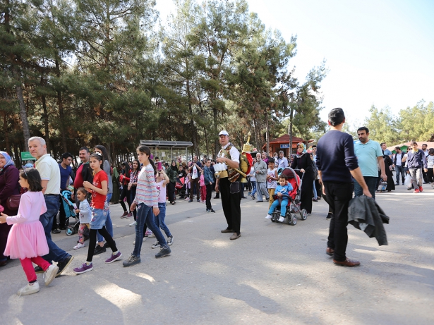 Gazianteplilerin yanı sıra çevre il ve ilçelerden gelenler, hayvanat bahçesinin girişinde uzun araç kuyrukları oluşturdu. Kalabalığa rağmen aileleriyle hayvanat bahçesine giren çocuklar, zürafa, fil, aslan, kaplan, ayı, deve kuşu, zebra, flamingo gibi hayvanları görebilmek için adeta birbiriyle yarıştı.