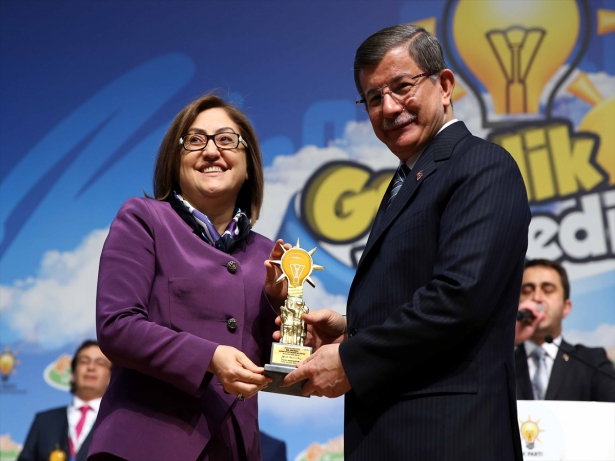 Gaziantep Büyükşehir Belediye Başkanı Fatma Şahin ödülünü, ATO Congresium'da düzenlenen "Gençlik ve Belediye" konulu 5. Yerel Yönetimler Sempozyumda Başbakan Ahmet Davutoğlu'nun elinden aldı.