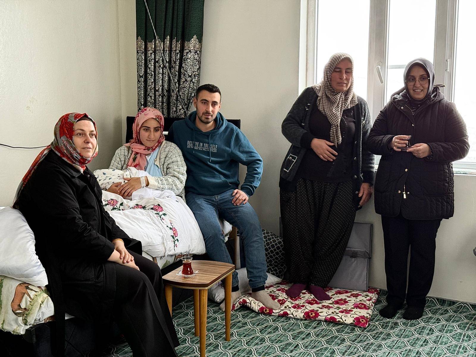 Dülük Köyü’nde ikamet eden aileyi evlerine güvenle ulaştıran Gaziantep Büyükşehir Belediyesi ekipleri, Gaziantep Büyükşehir Belediyesi Başkan Vekili Zehra Ünal’ın da katılımıyla aileyi ziyaret etti. Başkan Vekili Zehra Ünal, anne ve babayı tebrik ederek yeni doğan Mehmet bebek için hazırlanan hastane bebek çıkışı seti ile çeyrek altını aileye hediye etti.