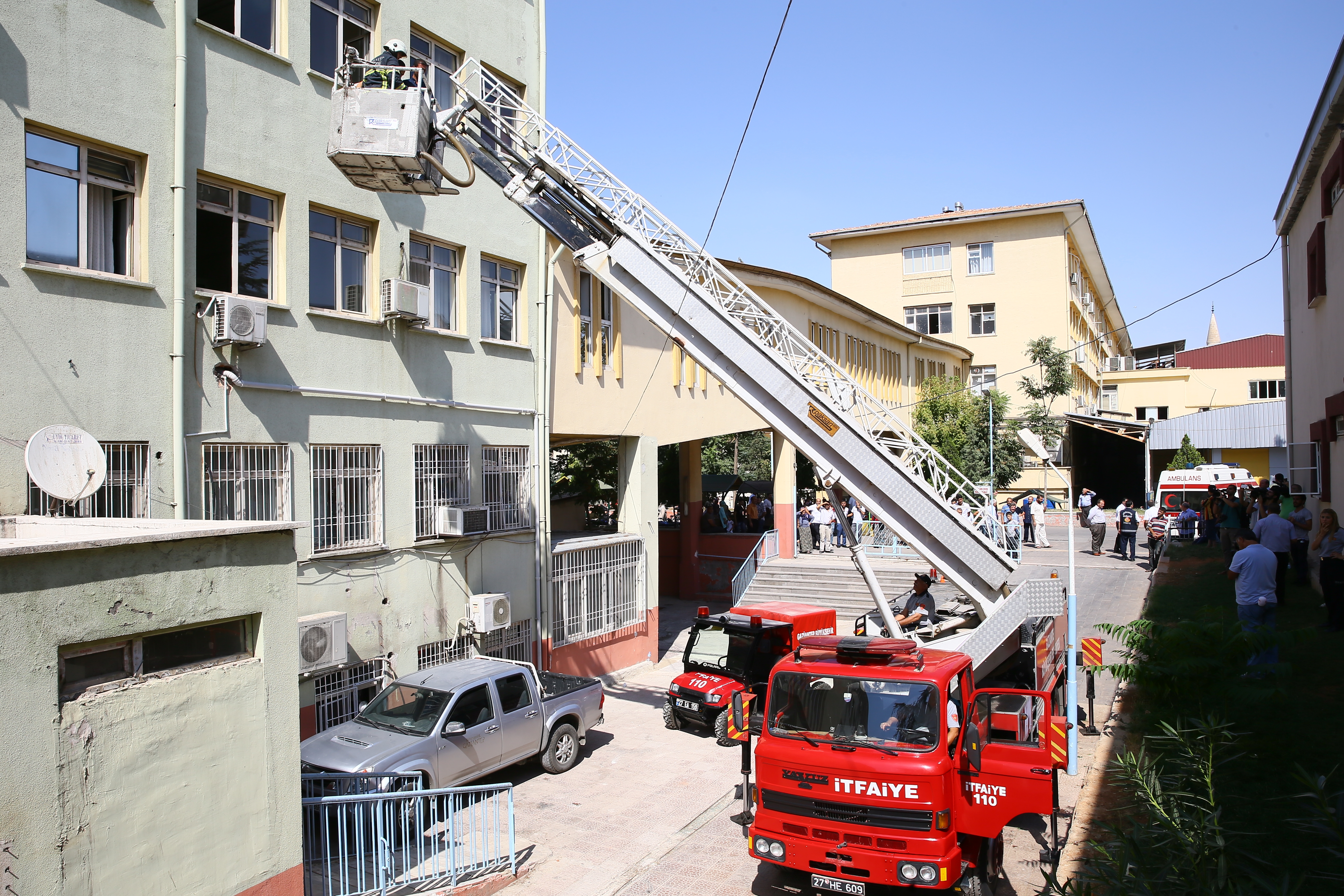 Dr. Ersin Arslan Devlet Hastanesi'nde, Ulusal Medikal Kurtarma Ekipleri (UMKE) ve Büyükşehir Belediyesi İtfaiye ekiplerinin katılımıyla gerçekleştirilen tatbikatta, afet durumunda hastaların ve yaralıların kurtarılması canlandırıldı.