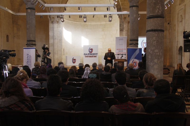 Ömer Ersoy Kültür Merkezinde düzenlenen protokol imza töreni öncesinde Gazikent Üniversitesi ve Gaziantep Büyükşehir Belediyesi işbirliği ile Merhamete Doğru Gaziantepin Rolü konulu konferans düzenlendi..