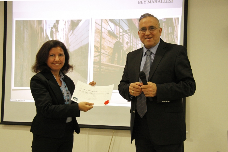 Büyükşehir Belediyesi Bahriye Üçok Toplantı Salonunda düzenlenen seminerine katılanlara sertifikaları Gaziantep Büyükşehir Belediyesi ve Tarihi Kentler Birliği Başkanı Dr. Asım Güzelbey tarafından verildi.