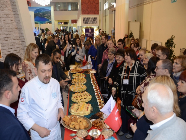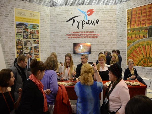 Kültür ve Turizm Bakan Yardımcısı Hüseyin Yayman, Türkiye’nin Moskova Büyükelçisi Hüseyin Diriöz ve Türk Hava Yolları (THY) Rusya Müdürü Mefail Deribaş, Sabah Gazetesi Yazarı Yavuz Donat’ta fuara katılıp, Gastronomi Kenti Gaziantep standını ziyarette bulunan misafirlere içli köfte, zeytinyağlı dolma, yaprak sarma, muhammara, humus, etsiz çiğ köfte, yapma, nişe helvası, su böreği, yöresel Antep kahkesi, muska, tuzlu Antep fıstığı, kuru üzüm çeşitleri, baklava ve lokum çeşitleri” gibi yöremize özgü tatlar ikram ettiler. İkram edilen Gaziantep’in yöresel lezzetleri ziyaretçiler tarafından beğenilerek yemeklere ait reçeteler, bilgilendirmeler ve tarifler Gaziantepli şeflerimiz tarafından ziyaretçilerle paylaşıldı.