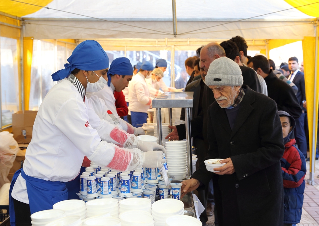 Namaz sonrası cami avlusunda çadır açan Gaziantep Büyükşehir Belediyesi ise, yaklaşık 5 bin kişiye mevlit kapsamında çeşitli ikramlarda bulundu.