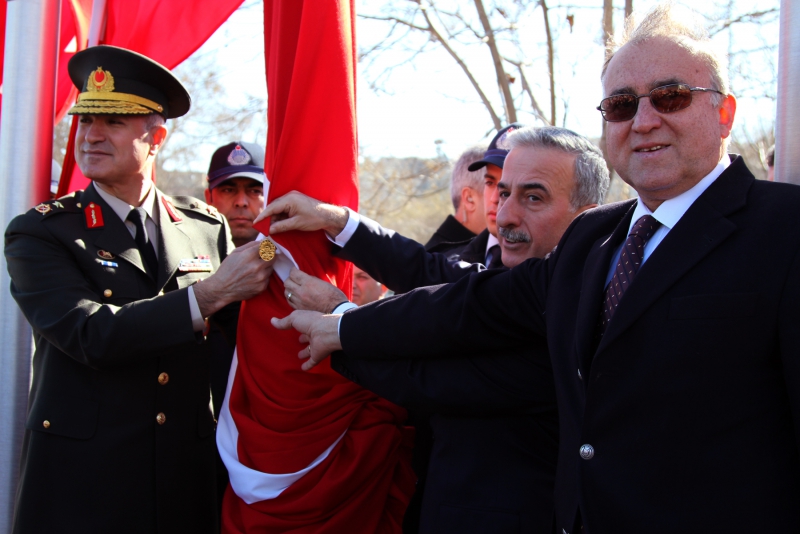 Törende, Vali Süleyman Kamçı, 5. Zırhlı Tugay Komutanı Tuğgeneral Kahraman Güneş ve Büyükşehir Belediye Başkanı Dr. Asım Güzelbey Atatürk Anıtı'na çelenk koydu, saygı duruşunda bulunuldu, İstiklal Madalyası takılan Türk Bayrağı, İstiklal Marşı eşliğinde göndere çekildi.