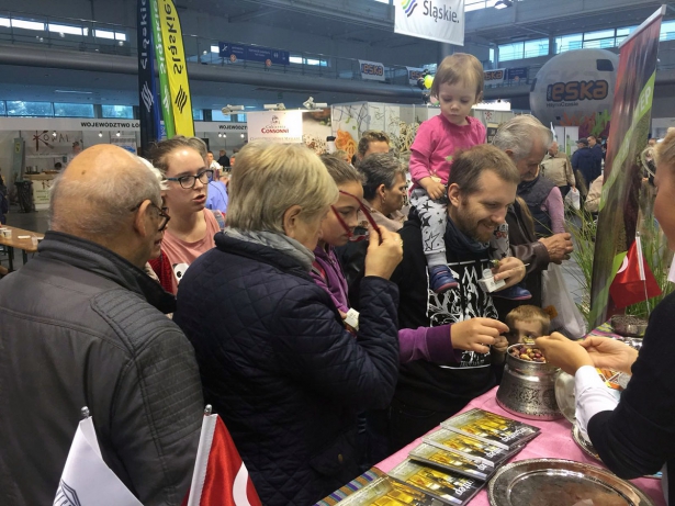 Büyükşehir Belediyesinin üyesi olduğu Avrupa Mutfak Mirası Ağı’nın öncülüğünde düzenlenen fuara, Türkiye’den Gaziantep ve Alanya, Romanya, Moldova, Belarus, Çekya, İsveç, Letonya ve Estonya’nın çeşitli şehrinden katılım sağlandı. 50 binin üzerinde kişinin ziyaret ettiği fuarda, Gaziantep, baklava, taze ve tuzlu Antep fıstığı, cevizli muska, cevizli sucuk, fıstık ezmesi ve Menengiç kahvesiyle ziyaretçilerin ilgisini çekti. Taze fıstık ve Menengiç kahvesini ilk kez tadan Polonyalılar, standın önünde uzun kuyruk oluşturdu, tattıkları lezzet karşısında hayranlıkların gizleyemedi.