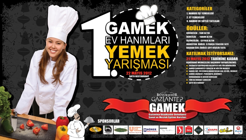 Gaziantep Büyükşehir Belediyesi Sanat ve Meslek Eğitimi Kursları (GAMEK)in 22 Mayıs tarihinde gerçekleştireceği 1. GAMEK Ev Hanımları Yemek Yarışması için başvurular başladı.