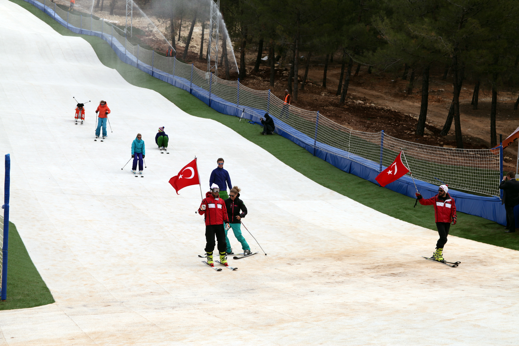 Bu tesisin aynısını Almanya’da gördüğünü vurgulayan Başkan Güzelbey, “Ben bunu yıllar önce Almanya’da görmüştüm. Tabi o günden bu güne tesiste de bir değişiklik oldu, büyük bir modernleşme çabası oldu. 214 hektarlık bir alan orman idaresinden belediyemize tahsisli olan mekanda bir kayak pisti yapalım dedik ve mekan olarak da ağaçların olmadığı daha çok taşlık bir bölgeyi tercih ettik. 4 pistten oluşan bir kayak merkezi burası. Pistlerden bir profesyoneller için 300 metreye yakın, diğeri 200 metre civarında, diğeri çocuklar için kızak, diğeri de kayak öğrenmek isteyenler için yapılan bir tesis. Toplam 300 kişinin aynı ayna kayak yapabileceği ekipmana ve tesise sahibiz. Bugün Gaziantepliler yeni bir kayak merkezi ile tanıştılar. Yakın çevredeki birçok insanlar ve Gaziantepliler hafta sonları Erciyes’e kaymaya gidiyorlardı. Artık gitmelerine gerek kalmadı. Ben artık şunu söyleyebilirim Erciyes’teki insanlar kayak yapmak için buraya gelirlerse hiç şaşmayın.” bilgilerini verdi.