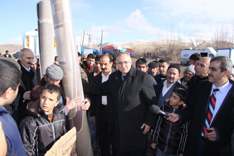 Tamamen yıkılan köyü gezen ve vatandaşların sorunlarını dinleyen Gaziantep Büyükşehir Belediye Başkanı Dr. Asım Güzelbey, daha sonra Gaziantepli hayırseverler tarafından gönderilen halı ve kilimleri vatandaşlara dağıttı.