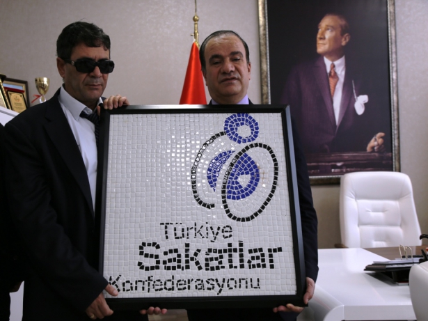 Çelebi, engellilere fırsat verildiği zaman neler yapılabileceklerini bu örnekte gördüklerini ifade ederek, “Arkadaşlarımız İŞKUR ile yürüttükleri kurs çerçevesinde bu güzel tabloyu yapıp bana hediye ettiler. Kendilerine teşekkür ediyorum. Daha önce de mozaikten bayrak, kurumların logolarını yaptıklarını biliyorum. Bizim Büyükşehir Belediyesi’nin logosunu da yaptıklarını biliyorum. Bu açıdan dernek başkanı ve üyelerini kutluyorum. Önemli olan bizim değil görmesi gerekenler bunu görmeleridir” şeklinde konuştu.
