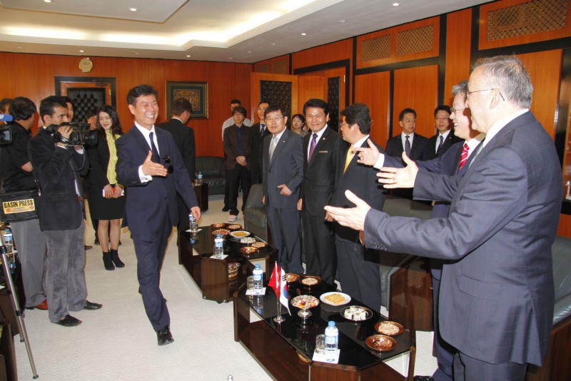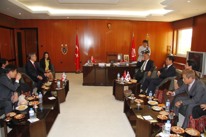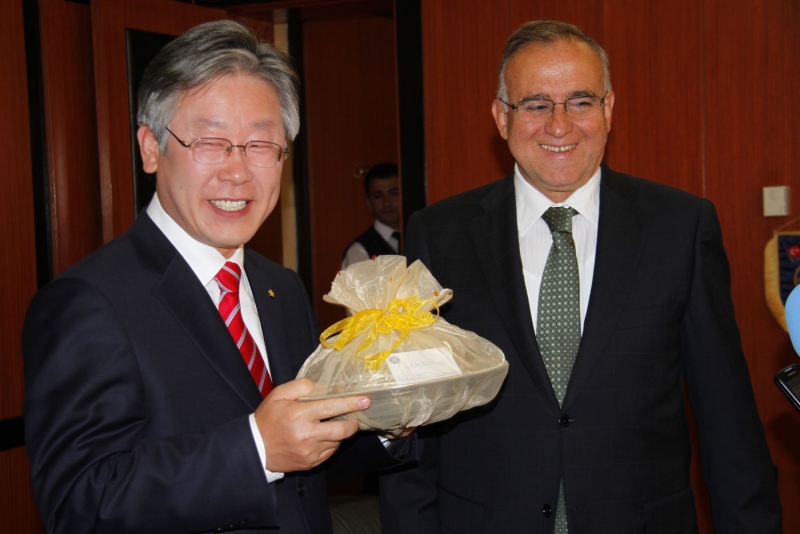 Büyükşehir Belediyesi Meclis Salonu Fuayesinde gerçekleştirilen imza töreni öncesi Seongnam Şehri Belediye Başkanı Jaemyung Lee, Belediye Başkan Yardımcısı Kwangeun Ji ve belediye heyeti Başkan Güzelbeyi makamında ziyaret etti.