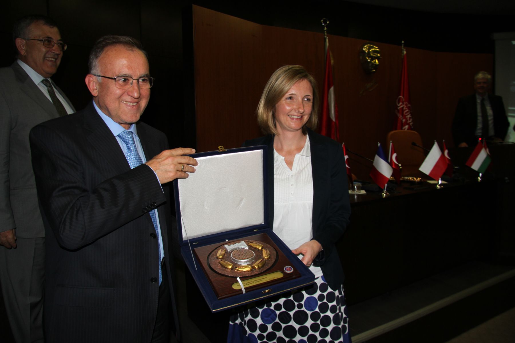 Program sonrası kendisine bir plaket hediye eden Alman Heyeti’ne Başkan Güzelbey de Gaziantep’i simgeleyen bir plaket verdi.