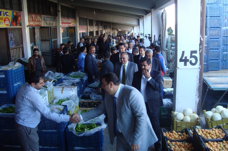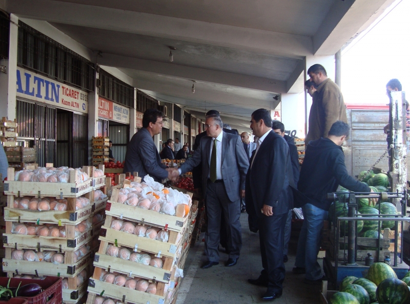 Gaziantep Sebze ve Meyve Komisyoncuları Başkanı Hayri Sucu ile beraber Hal Müdürlüğünü de ziyaret eden Başkan Güzelbeye Hal Müdürü İhsan Özkan tarafından, Gaziantep Halinde yürütülen çalışmalar ile Hal Kanunu ve Uygulamaları hakkında kısa bir sunum yapıldı.