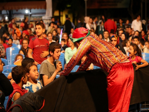 Ramazan akşamlarında en büyük ilgi ise çocuklardan geldi. Büyükşehir Belediyesi tarafından hazırlanan gezici sahne, hergün farklı mahallede, çocuklar için kuruluyor.