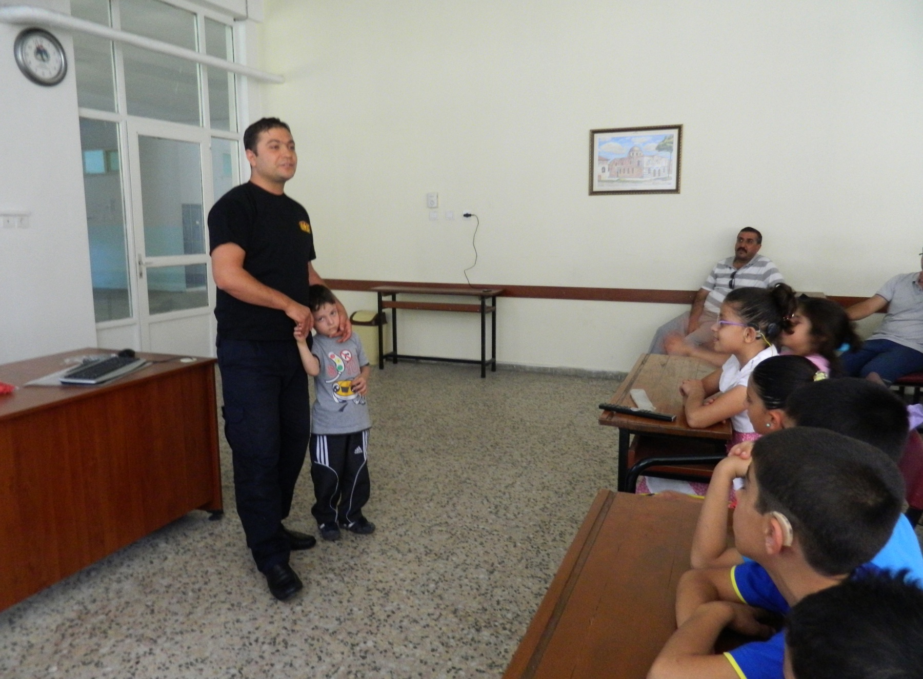 İtfaiye Daire Başkanlığı eğitim salonunda düzenlenen teorik eğitimin ardından merkezde kendileri için hazırlanan sembolik tatbikatta itfaiye aracına binen çocuklar siren çalarak temsili olarak yangına gittiler.
