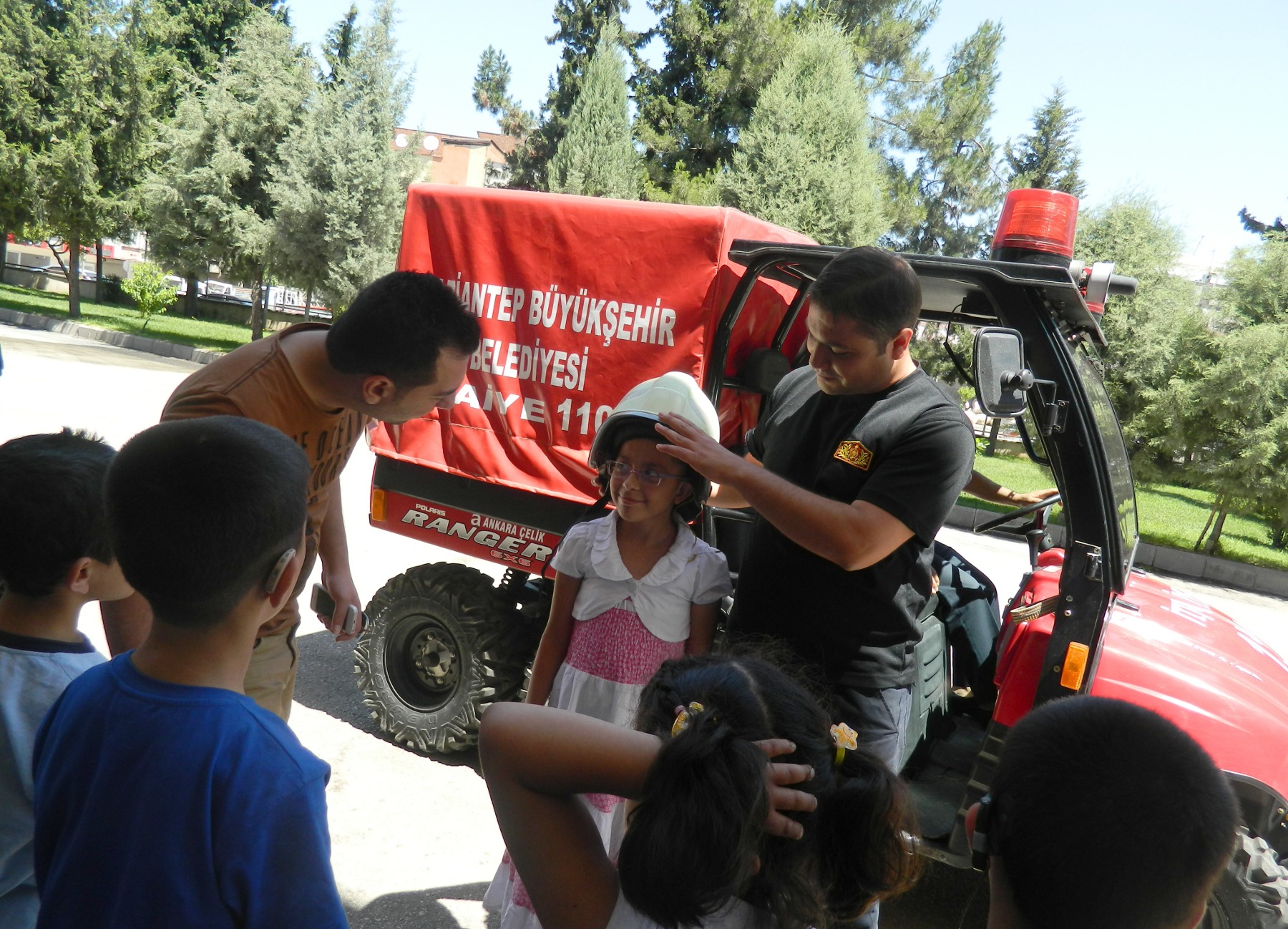 Büyükşehir Belediyesi İtfaiye Daire Başkanlığı tarafından vatandaş bilgilendirme eğitimleri kapsamında düzenlenen eğitim programında çocuklara yangın ve afetlerde yapılması gereken uygulamalar ve davranış biçimleri anlatıldı.