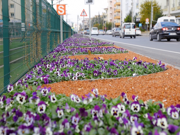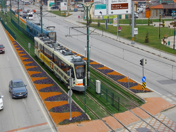 Gaziantep’in en önemli toplu taşıma hattı olan raylı sistemin güzergahı boyunca kuru peyzaj materyalleri ile birlikte kullanılan mevsimlik çiçek sirkülasyona önemli değer kazandırdı.
