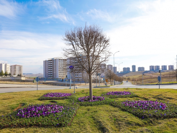 Kent merkezinde bulunan geniş yaya yollarında da mevsimlik çiçek dikimi yapılarak yürüyüş akslarında yoğun betonarme görüntünün etkisi kırılıp yerine keyifli bir yürüyüş aksı oluşturuldu.