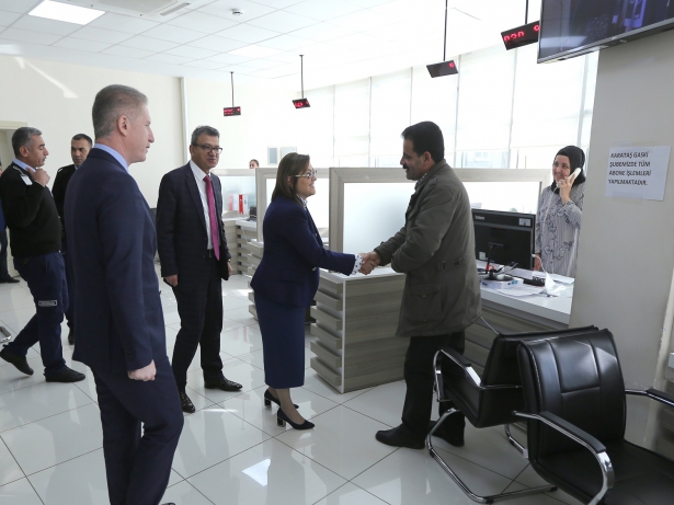 Öte yandan Gaziantep Büyükşehir Belediye Başkanı Fatma Şahin, GASKİ Genel Müdürlüğüne su faturasını ödemeye gelen vatandaşlarla yakından ilgilendi, onlarla hasbihâl etti.