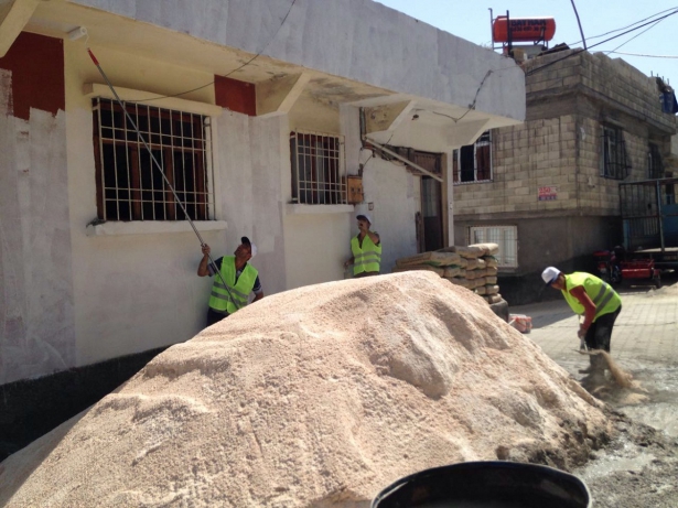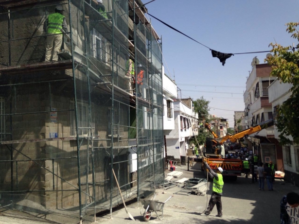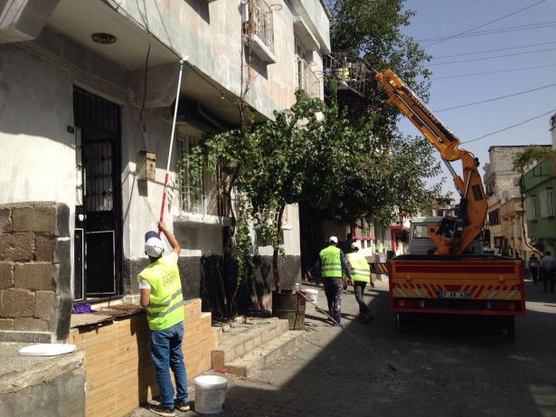 Sokakta camları kırılan evleri yenileyen ekipler, bazı binaları da yeniden boyadı. Öte yandan ekipler önceden sıvası yapılmayan evlerin de sıvasını gerçekleştiriyor.