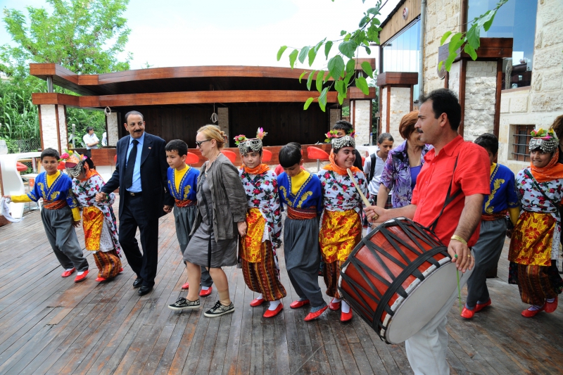 Yemek sonrası Gaziantepin yöresel oyunlarından örnekler sergileyen minik folklorculara eşlik eden Büyükelçiler davul zurna eşliğinde halay çektiler.