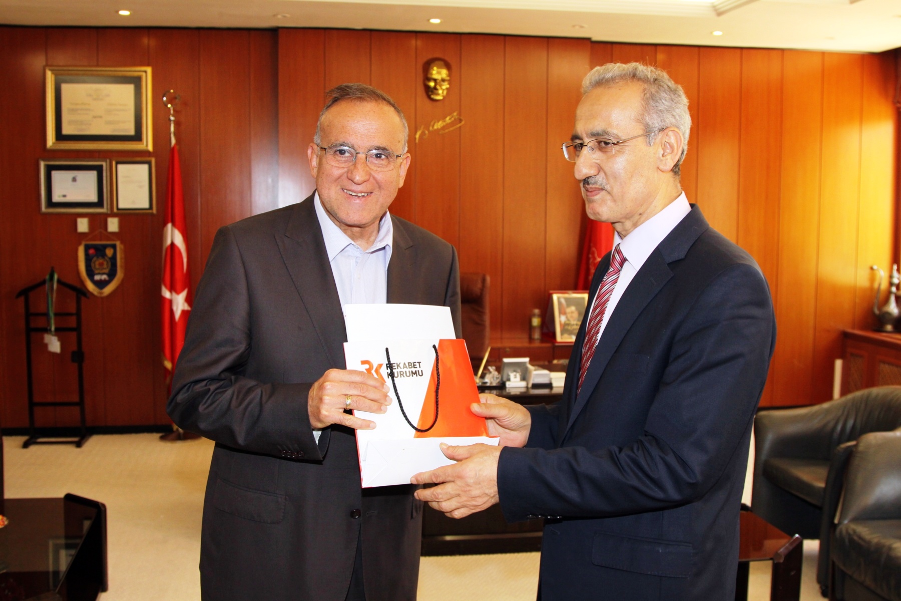 Karşılıklı hediyeleşmelerin yapıldığı ziyarette Rekabet Kurulu Başkanı Prof. Dr. Nurettin Kaldırımcı, Rekabet Kurulu İkinci Başkanı Kenan Türk, Rekabet Kurulu Başkan Yardımcısı Doç. Dr. Tahir Saraç ve Rekabet Kurulu Başkan Yardımcısı Ali Demiröz ile üyeleri yer aldı.