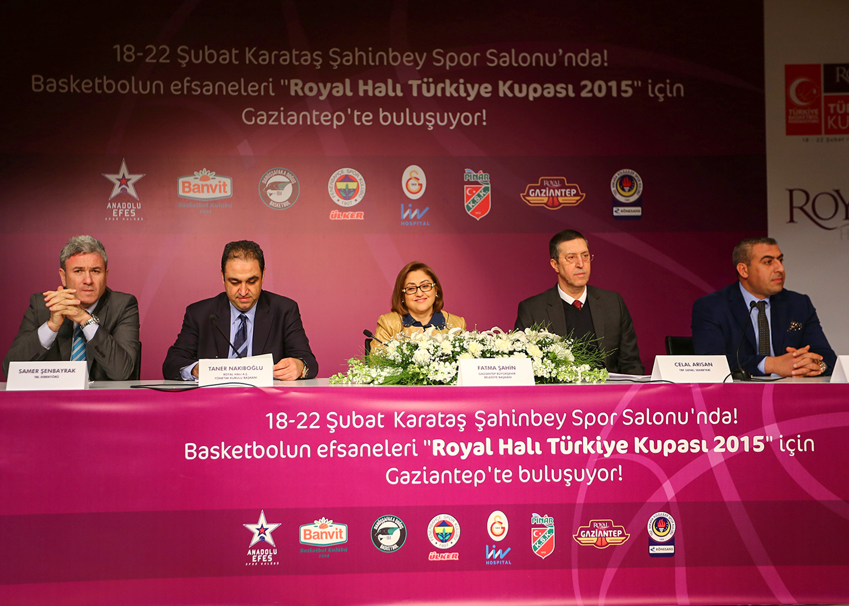 Basketbola verdiği destekle tanınan Royal Halı'nın resmi sponsorluğunda 18-22 Şubat tarihleri arasında oynanacak olan TBF Royal Halı Türkiye Kupası heyecanı gelecek hafta Gaziantep'te başlıyor. Turnuva ile ilgili olarak, Royal Halı Yönetim Kurulu Başkanı Taner Nakıboğlu ve Royal Halı Yönetim Kurulu Üyesi ve Genel Müdürü Cihan Dağcı'nın ev sahipliğinde düzenlenen basın toplantısına; Türkiye Basketbol Federasyonu Genel Sekreteri Celal Arısan, Türkiye Basketbol Ligi Direktörü Samer Şenbayrak, Gaziantep Belediye Başkanı Fatma Şahin ve Gaziantep Gençlik Hizmetleri ve Spor İl Müdürü Ömer Faruk Şiran katıldı.