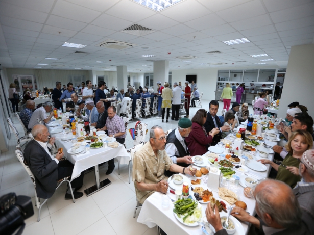 Ezanın okunmasıyla iftarını huzurevi sakinleri ile açan Şahin, yaşlıların ramazan ayını kutladı.
