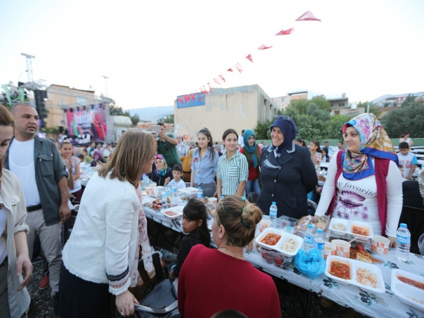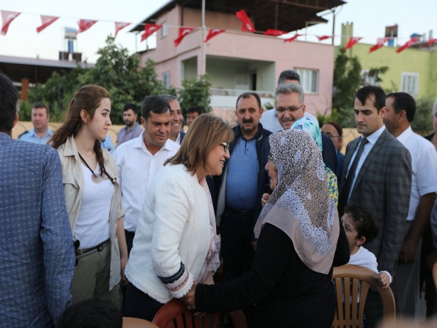 Nurdağı Büyükşehir Parkı’ndaki iftar yemeğine katılan Gaziantep Büyükşehir Belediye Başkanı Fatma Şahin, masaları tek tek gezerek vatandaşların ramazanını kutladı.