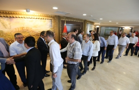 Başkan Vekilleri, Genel Sekreter, Genel Sekreter Yardımcıları, GASKİ Genel Müdürü, daire başkanları, birim müdürleri ile personellerin katıldığı bayramlaşmada iyi niyet dileklerinde bulunan Şahin, aynı zamanda tüm İslam aleminin de bayramını kutladı.