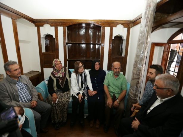 Aileyi ziyaret eden Fatma Şahin, şehidin annesi Emel ve babası Mehmet Taşçı ile bir süre sohbet etti.