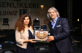 Konserin ardından Gaziantep Büyükşehir Belediyesi Kültür ve Sosyal İşler Daire Başkanı Hülya Yıldız, Mutlu’ya hediye takdim etti.
