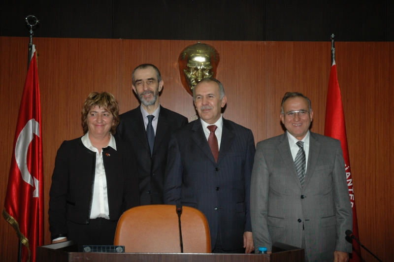Konuşmaların ardından Mizyal Karabibere Slovenyanın Gaziantep Fahri Konsolosluğu belgesini takdim eden Slovenyanın Ankara Büyükelçisi Doç. Dr. Milan Jazbec, Gaziantep Valisi Erdal Ata, AK Parti Gaziantep Büyükşehir Belediye Başkanı Dr. Asım Güzelbey, Slovenyanın Fahri Konsolosu Mizyal Karabiber objektiflere poz verdiler.