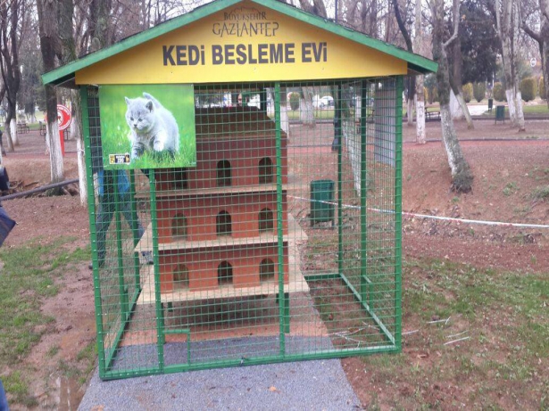 Daha önce de sokak köpekleri için merkez ve ilçelerde beslenme noktaları oluşturan daire başkanlığı, sokakta yaşayan kediler içinde şehrin muhtelif yerlerinde kedi besleme evi ve barınak yaptı.
