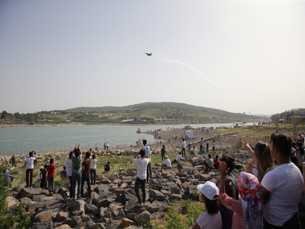Göl üzerinde 30 metre ila 5 kilometre irtifalarda gerçekleşen manevralar esnasında F-16'nın kullandığı flare ve duman gösterisi izleyicilerden büyük alkış aldı.