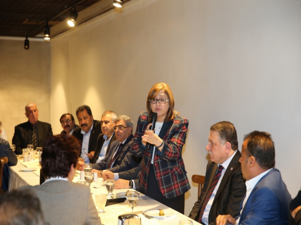 Büyükşehir Başkanvekili Osman Toprak tarafından gezdirilen projelerin bitiminde Kültür ve Sanat Merkezi’ndeki yemekte bir araya gelen Şahin, burada STK ve oda temsilcilerine yapılan projeler hakkında bilgilendirme yaptı.