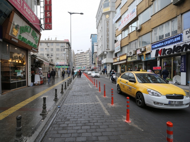 Öte yandan esnek dikmeyle yasaklanan parkomat alanları bordür düzenlemesiyle kalıcı hale getirildiği zaman esnafın indir-bindir yapacakları cep alanları da oluşturulacaktır.
