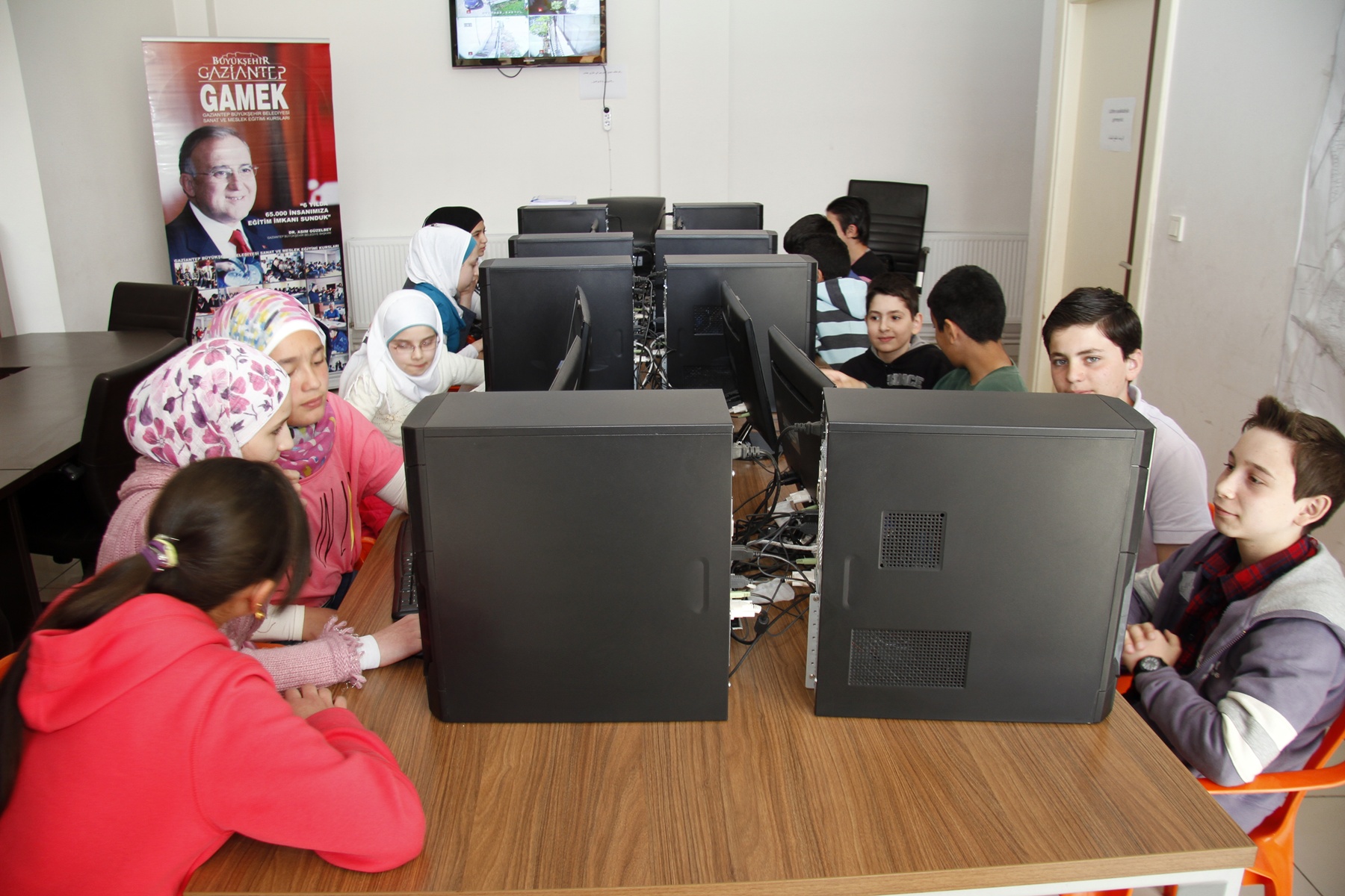 Yapılan açılış sonrası çocuklar bilgisayarlara oturarak ilk derslerini almaya başladı.