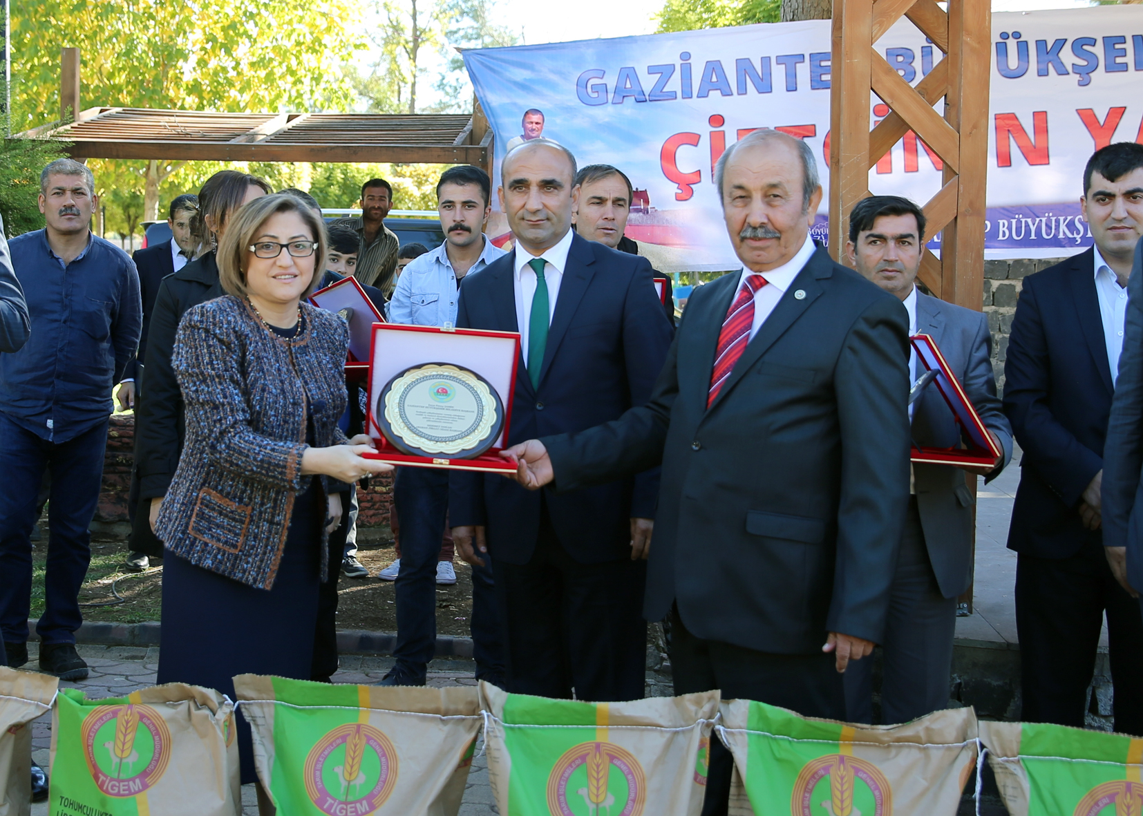 Bu arada, Araban ve Yavuzeli Belediye Başkanları katkılarından dolayı Başkan Fatma Şahin’e birer teşekkür plaketi verdiler. Konuşmaların ardından çiftçilere tohumları dağıtıldı.