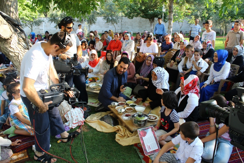 Sunguroğlu Lisesi Mezunları (SUNDER) dernek binasının bahçesinde çekilen İftar Zamanı programının canlı yayınına katılan Gaziantep Büyükşehir Belediyesi Sanat ve Meslek Eğitimi Kursları (GAMEK) eğitmenleri ile kursiyerleri, Gaziantep'in birbirinden güzel yemeklerini Türkiyeye tanıttılar.
