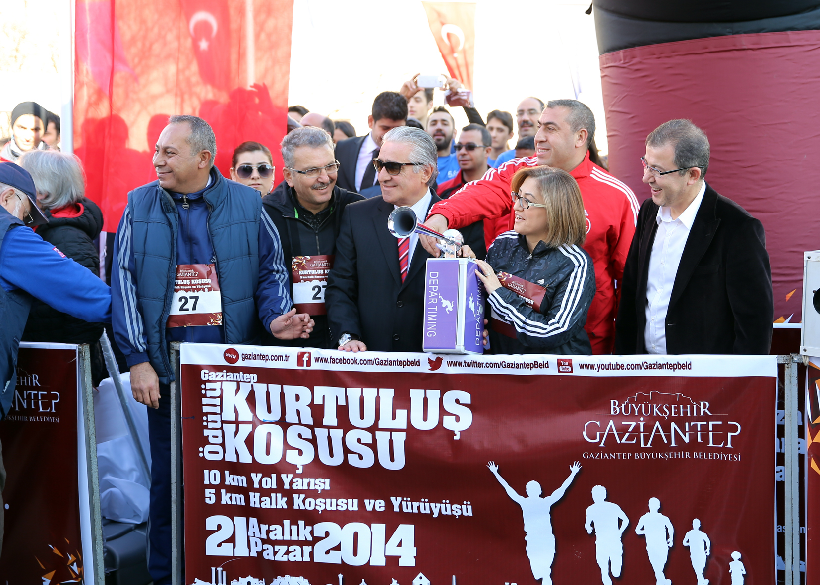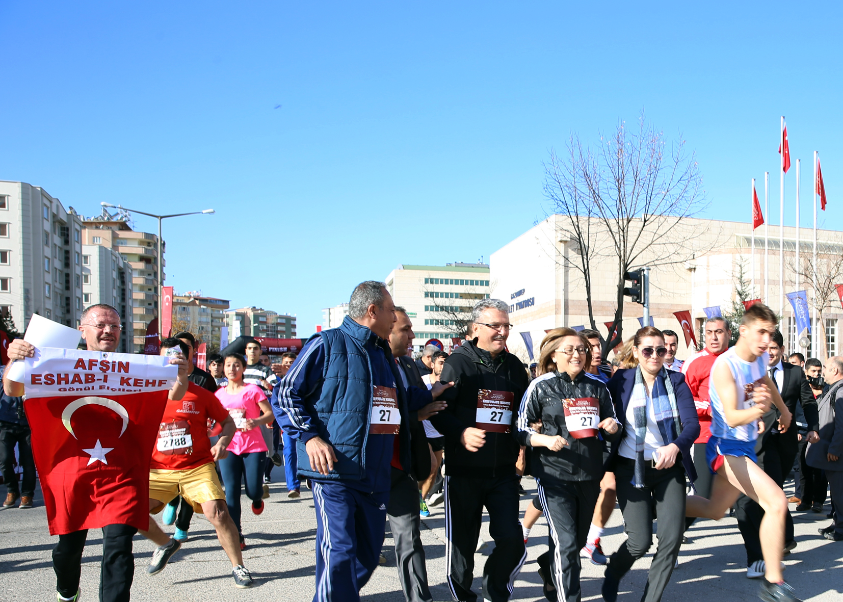 Koşu başlamadan önce alanı ziyaret eden Gaziantep Büyükşehir Belediye Başkanı Fatma Şahin, katılımcılardan yoğun ilgi gördü. Özellikle çocukların yoğunlukta olduğu etkinlikte, onların coşkusuna ortak olan Şahin, “Biz Anteplileriz, Gazianteplileriz” şarkısın eşlik ederek, “Türk Bayrağı” salladı.