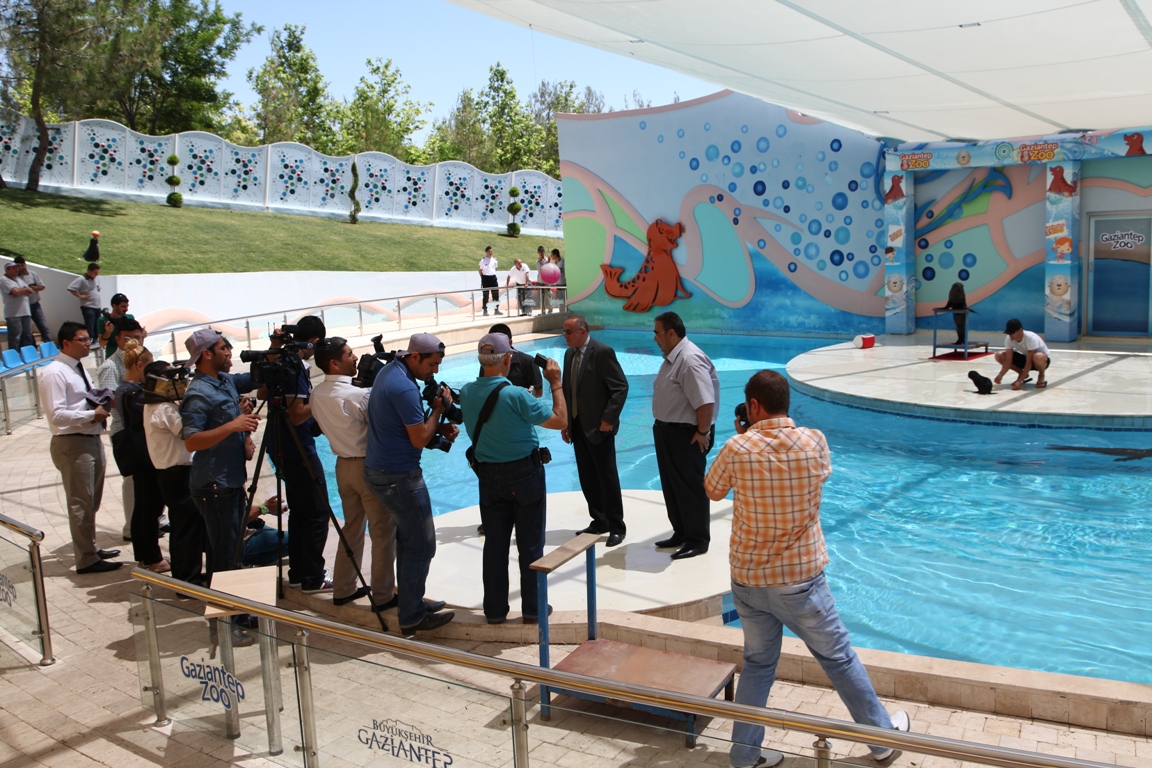 Fok Evi’ndeki fokların gösterisinin her geçen gün artarak devam ettiğini ifade eden Gaziantep Büyükşehir Belediye Başkanı Dr. Asım Güzelbey, “Türkiye’de bir hayvanat bahçesinde fok balığı ilk kez bizim hayvanat bahçemizde doğum yaptı. Daha önce 4 tane olan fok balığımızın sayısı şimdi 5 oldu. İnsanlar tarafından gösterileri çok sevilen ve ilgi ile izlenen foklara her geçen gün ilgi artarak devam ediyor. Hafta içi her gün saat 14.30’da, hafta sonları ise 12.30, 14.30 ve 16.30’da gösterileri var. Görmeyen herkesi bu fokları görmeye davet ediyorum” diye konuştu.