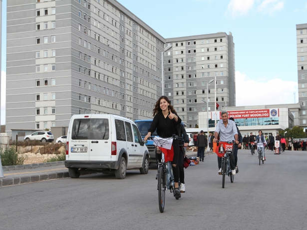 İnsanların istemesi durumunda birlikte yaşayabildiğini ve beraber olabildiğini vurgulayan Çelebi, “Bugün 3 bin dolayında kız öğrencinin kaldığı yurda geldik. Gaziantep Üniversitesi kız öğrencilerimiz ile bir bisiklet gezisi tertipledik. İnşallah bu gezimiz tüm Türkiye’ye örnek olur” dedi.