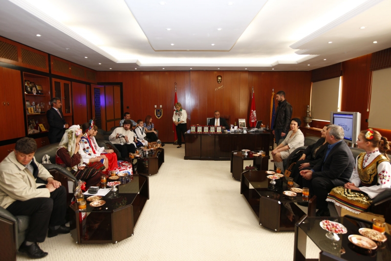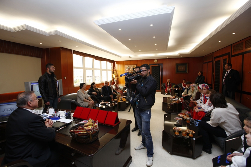 Büyükşehir Belediyesi Kültür ve Sosyal İşler Daire Başkanlığı tarafından 23 Nisan Ulusal Egemenlik ve Çocuk Bayramı etkinlikleri çerçevesinde düzenlenen "Çocuk Festivali" kapsamında 19-24 Nisan tarihleri arasında yapılacak olan Halk Dansları Şenliği için Makedonya, Romanya, Bulgaristan, Ukrayna ve Kuzey Kıbrıs Türk Cumhuriyeti'nden Gaziantep'e gelen folklor ekibi Başkan Güzelbey'i ziyaret ederek ülkelerinden getirdikleri çeşitli hediyeleri takdim ettiler.