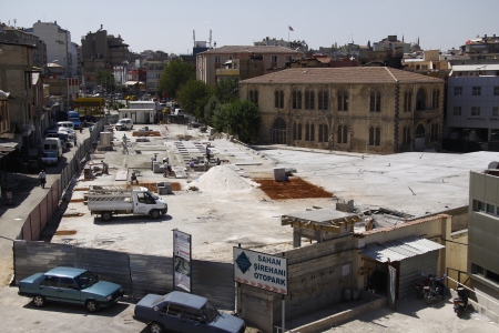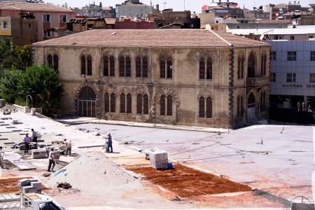 Gaziantep Büyükşehir Belediyesi, kent meydanı ve tarihsel olarak küçük ölçekte toplanma merkezi oluşturmayı amaçlandığı bu çalışma için tarihi ve mimari açıdan ön plana çıkarılan İlçe Halk Kütüphanesi binası seçilmiştir.